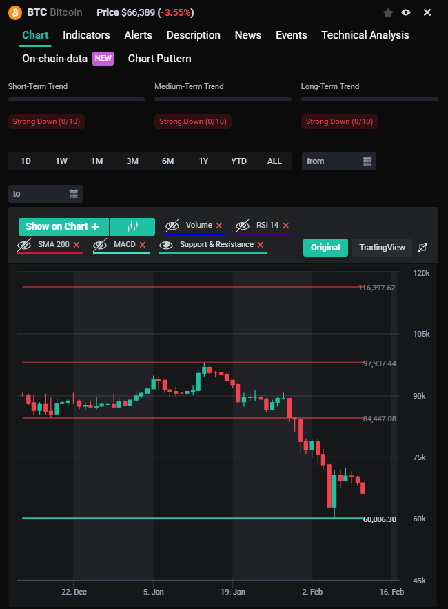 altFINS solves this problem with algorithmic detection of Support & Resistance levels, automatically calculated across:
