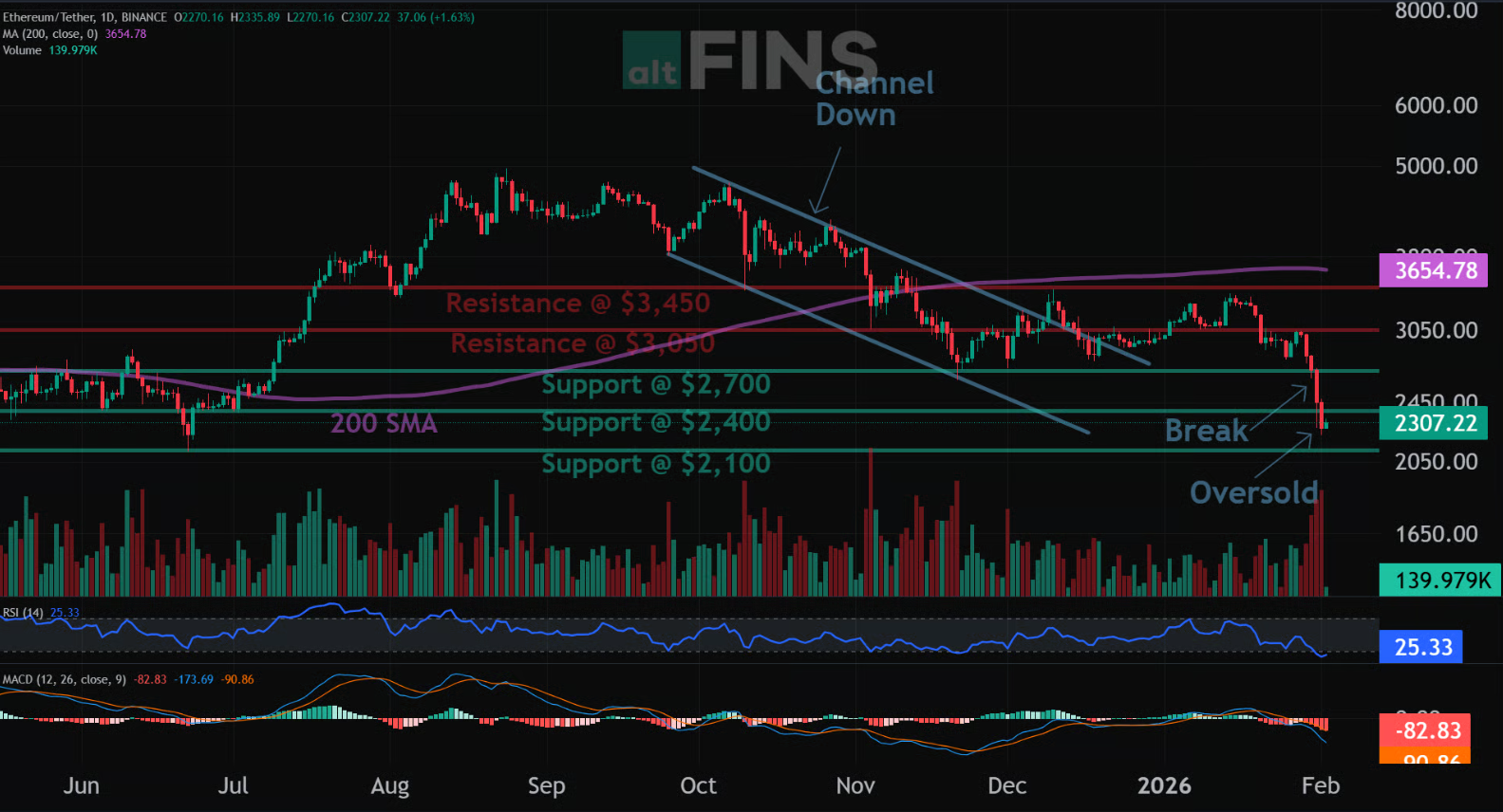 Setup 6: Ethereum (ETH) — Break Below $2,700 → Oversold at $2,400 → Target $2,100