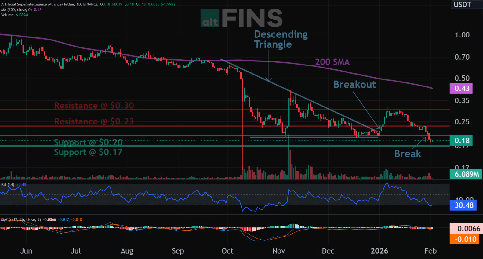 Setup 2: Artificial Superintelligence Alliance (FET) — Break Below $0.20 → Target $0.17