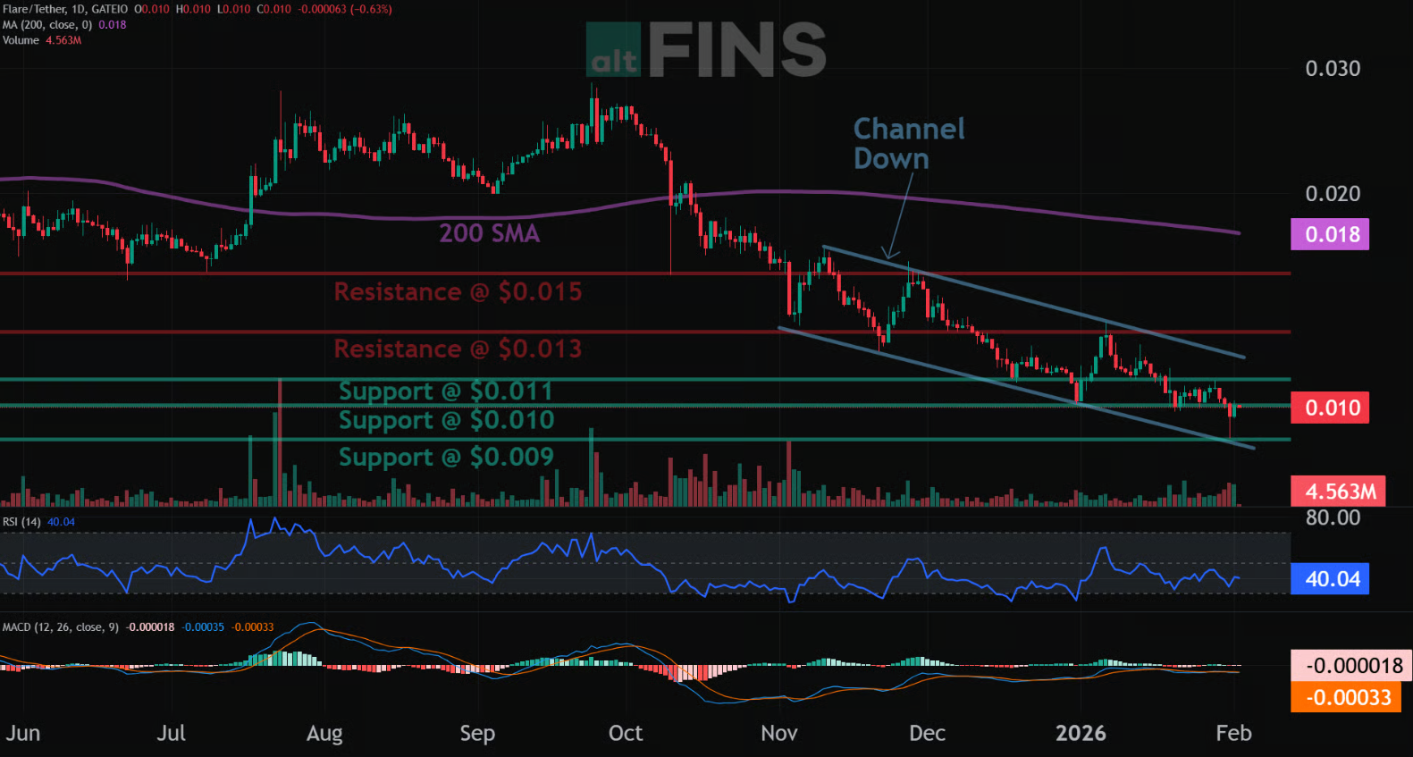 Setup 4: Flare (FLR) — Rejection at $0.013 → Break Below $0.010 → Target $0.009
