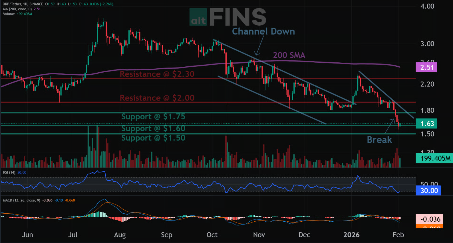 Setup 5: XRP (Ripple) — Break Below $1.75 → Oversold Bounce → Target $1.50