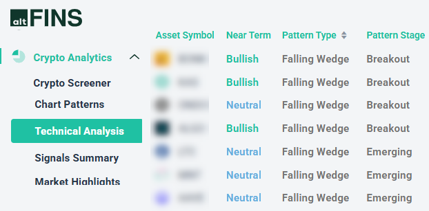 2) Technical Analysis (search for Channel Down and Falling Wedge pattern types)