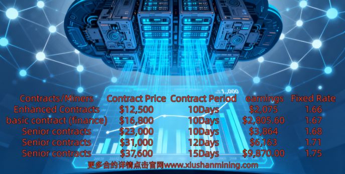 is a new model of cloud mining mobile priority platform. Users simply select a contract through the app or website, and all operations earnings, etc. are handled automatically. Unlike traditional mining, xiushan mining pays a fixed dollar settlement every 24 hours, providing investors with predictable daily returns regardless of price fluctuations in cryptocurrencies such as BTC, ETF, ETH, XRP, and more. By eliminating the cost of hardware, electricity, and technical setup, xiushan mining transforms cryptocurrencies into high-yield, cash-flow generating assets, simply and securely enabling ordinary investors around the globe to participate in cloud mining to generate additional income.