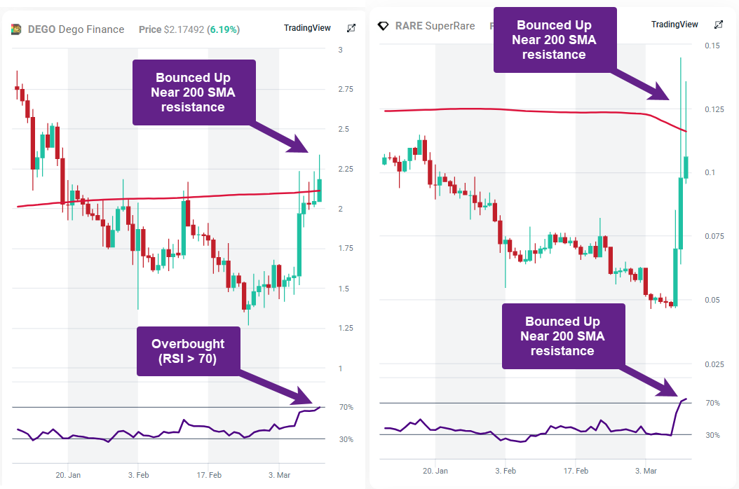 - Bounced Up in Downtrend: Identifying assets that temporarily recover in an overall downtrend.