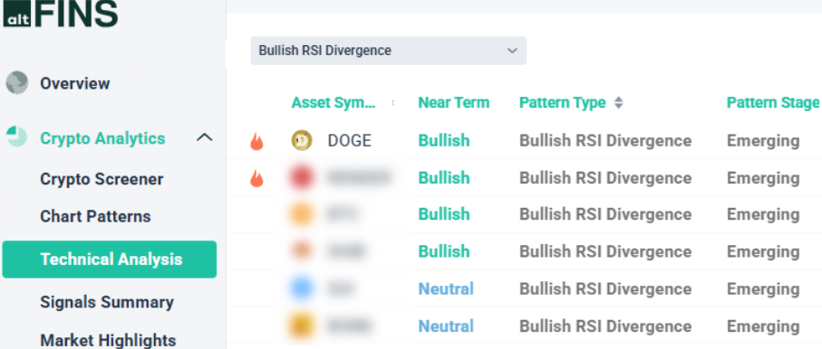 Find these signals under Crypto Analytics → Technical Analysis → Trade Setups on altFINS: