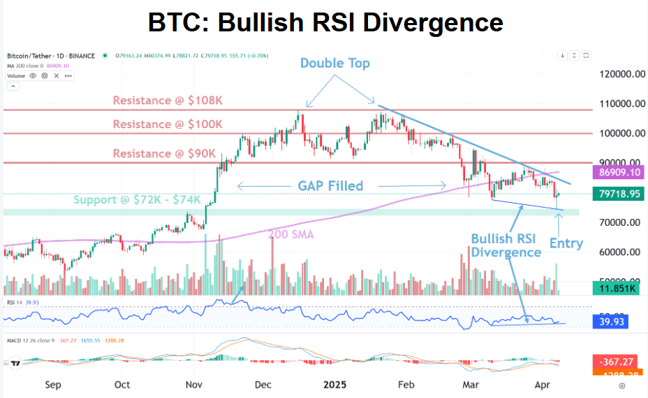 While most crypto assets remain in a downtrend, the emergence of oversold RSI conditions and Bullish RSI Divergence suggests a possible near-term bounce.