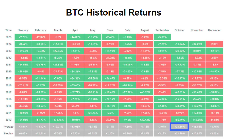(October) is known to be a great month for crypto. It’s recorded gains in 10 out of the last 12 years! (for BTC at least)