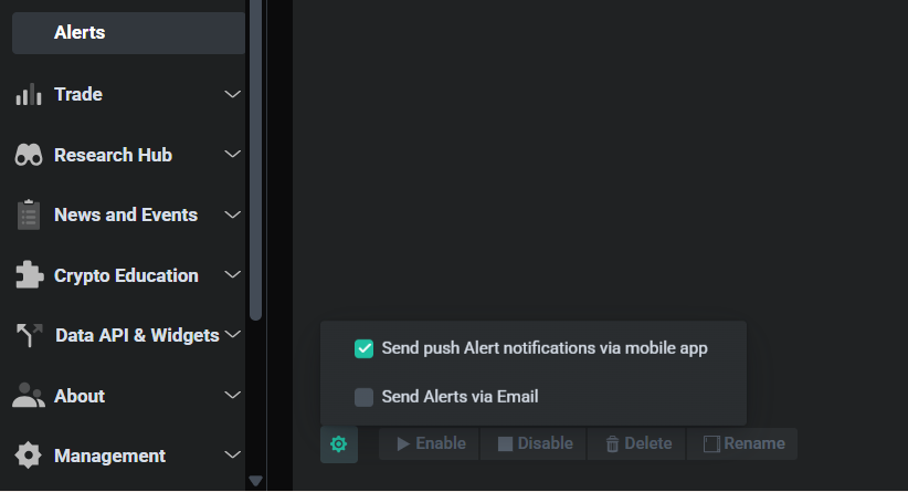 - Alerts: Create and manage custom price, indicator, and signal notifications.