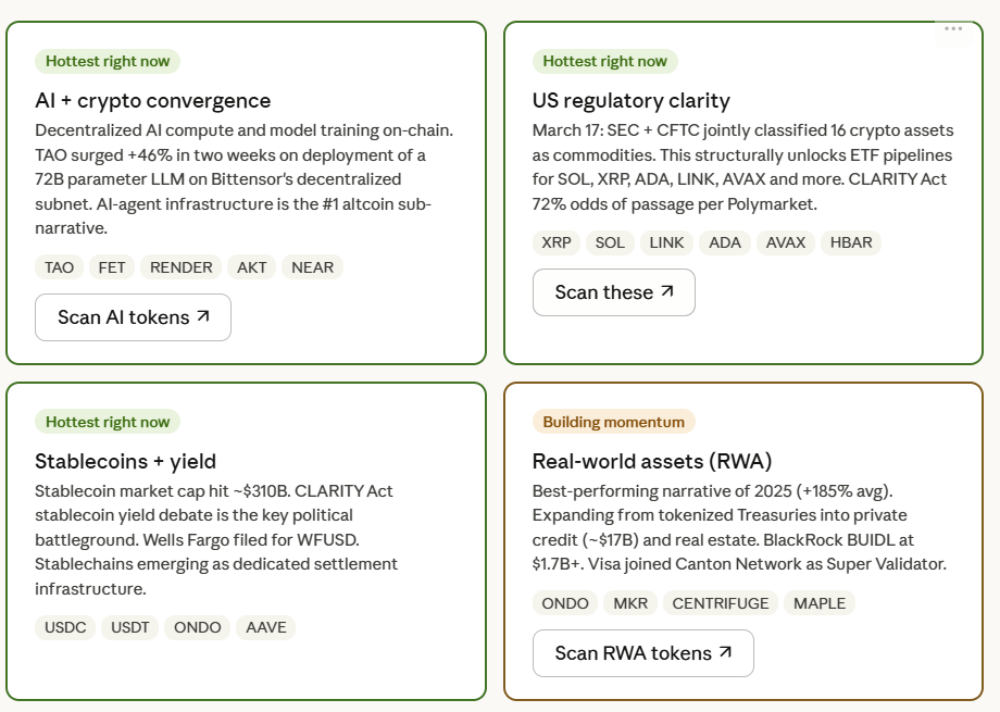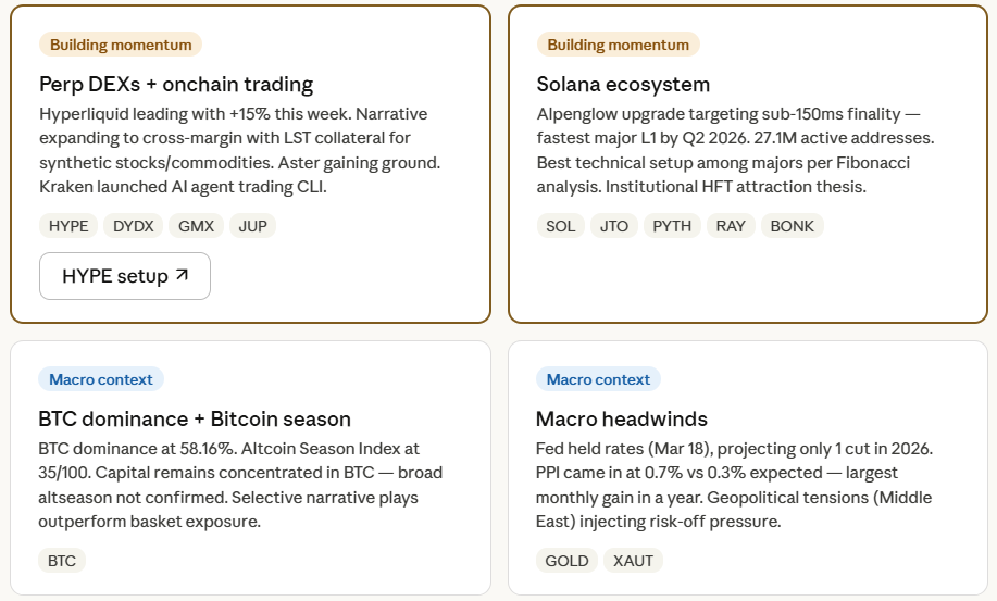 Most crypto traders spend hours flipping between screeners, chart platforms, and news feeds to find a single trade idea. What if you could do all of that in a conversation?